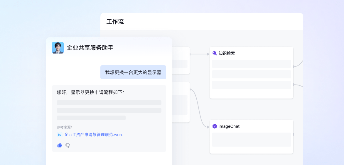 领先的智能体对话效果 平台内置行业实践流程、领先的RAG算法,只需导入文档/问答对,即可让智能体对接企业多模态知识,达到稳定精确的知识问答效果。支持画布式灵活编排工作流,可快速将企业系统API接入智能体,智能体输出更稳定可控。